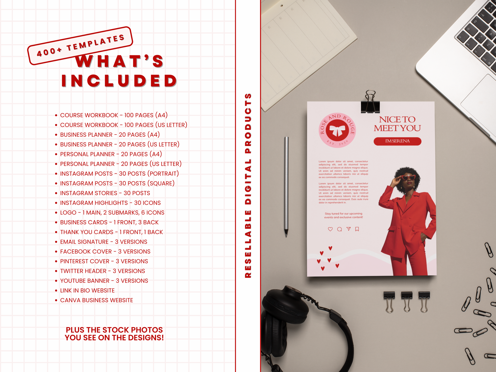 + All the stock photos you see on the designs!